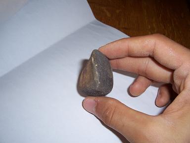 Si la pierre avait été très légère, vu la forme, ça ressemblait bigrement à une pierre ponce qu'utilisaient nos parents pour se détacher les mains, mais, là , cela à l'air d'être moins rugueux et plus lourd ...