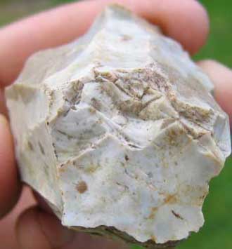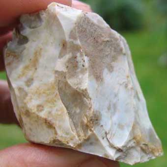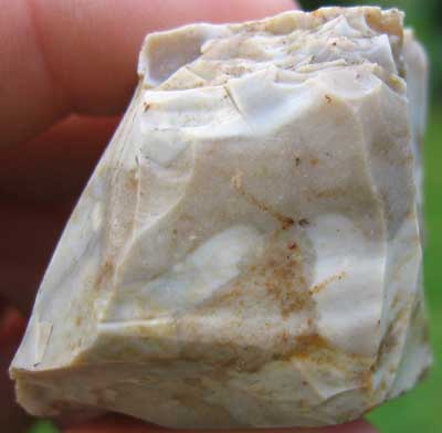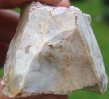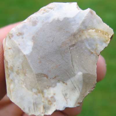 [799] le bas où l'on voit bien le silex gris plus hétérogène (qui apparait aussi sur les autres faces) qui est peut etre à l'origine de l'abandon de ce 'nucleus'