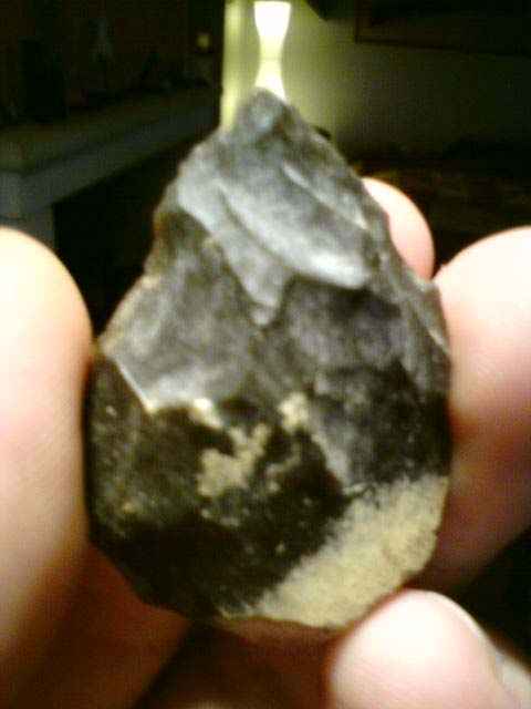 Spéciale dédicace pour Ovny, biface de 4,6 cm, même avec ses gros doigts boudinés le néander savait tailler des outils de chirurgien.