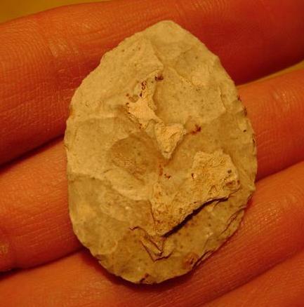 Il existe de tout petits bifaces moustériens, le plus mini que j'ai tenu dans les mains ne faisait pas 4cm !!!, qu'un ami à découvert, l'outil ayant été clairement identifié, ils ne se trouvent pas seulement en Normandie mais bien bans notre chère dordogne. Effectivement on est pas dans le soud profond, et je n'ai absolument aucune connaissance du coin, par contre j'ai un exemplaire qui fait à peine 5 cm. Par contre on ne peut bien évidement pas être afirmatif sur l'identification, mais bon je vois mal ce truc ailleurs, enfin ton caillou Juju mérite d'être montré à qq1 qui pourrait trancher, affaire à suivre.