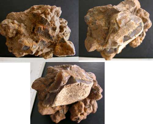 A côté d'un nucleus levallois , voici un silex inclus dans une gangue métallique (limonite?)(290gr/7x5x4.5cm)