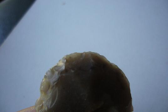 voici un petit silex que je pense etre un racloir,il mesure 30mm par 28 et est épais de 8mm.