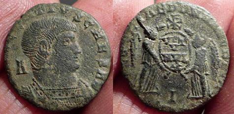 En effet, pour Magnence nous devrions lire sur l'avers DNMAGNENTIVSPFAVG or sur ma monnaie j'arrive distinctement à lire sur l'avers SCHE à droite du portrait ce qui ne correspond pas avec DNMAGNENTIVSPFAVG.