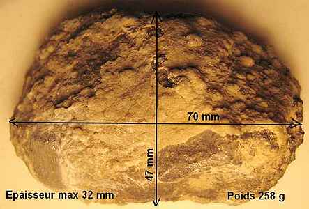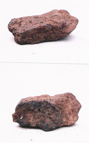 je sais mon titre n'est pas tres original , mais en 4 ans de detection c'est pourtant la premiere fois que je trouve ce genre de pierre . elle mesure 9.5 cms de long , 3.7 cmc d'epaisseur , 4.5 cms de profondeur et ne pese que 55 g , j'ai peser une pierre normale qui a ( a peu pres la meme taille ) elle pese plus de fois ce poid .