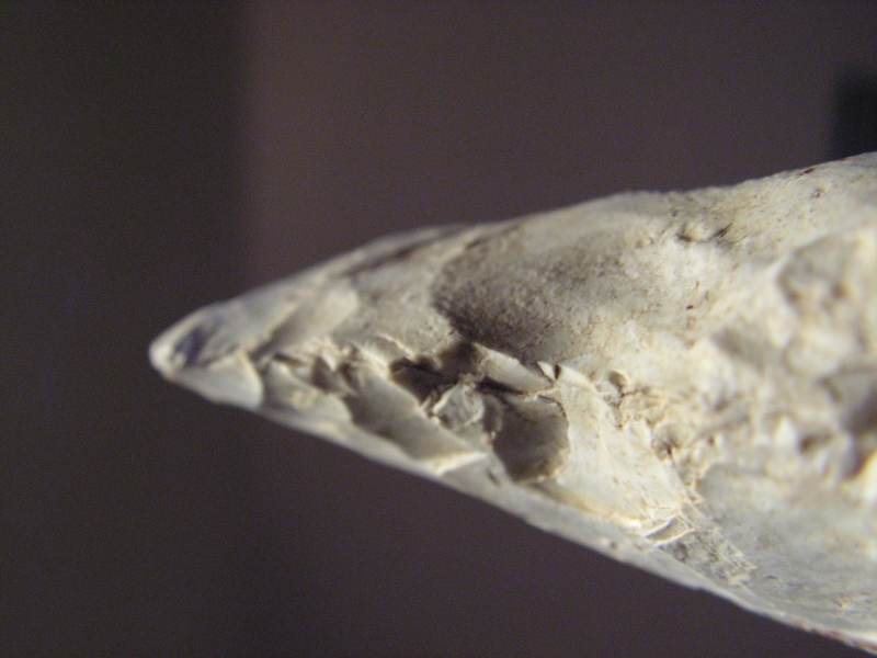 Je ne pense vraiment pas que ce soit un nucléus. Le coté opposé du plan de frappe; celui où la pointe est émoussée (il doit manquer 1-1,5 cm de pointe pour que l'outil soit complet) est encore très tranchant; et ces tranchants sont travaillés assez finement. De plus j'ai déjà des outils de types moustérien et néo de cet endroit (perçoirs; outils sur éclats et fragments de haches polies).