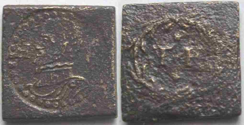 [240] Salut à tous , je vous soumets un poids monétaire pour connaître le type de monnaie et la datation , il fait 1,6cm pour 1,5cm , 49,6 grains ( soit 2,63 grammes ) , il présente un portrait vers la gauche avec 2 H ( henri 2 ? ) , au revers 2 lettres TF avec 3 points verticaux , entourées d’une couronne