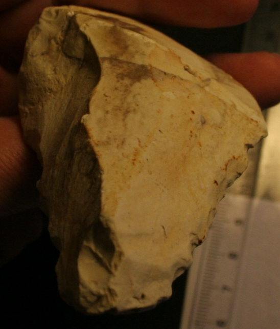 Il y a un truc assez bizarre sur l'autre face un espèce de bourrelet et je n'arrive pas trop à expliquer cela (peut-être une épaisseur de silex a été enlevée ?).