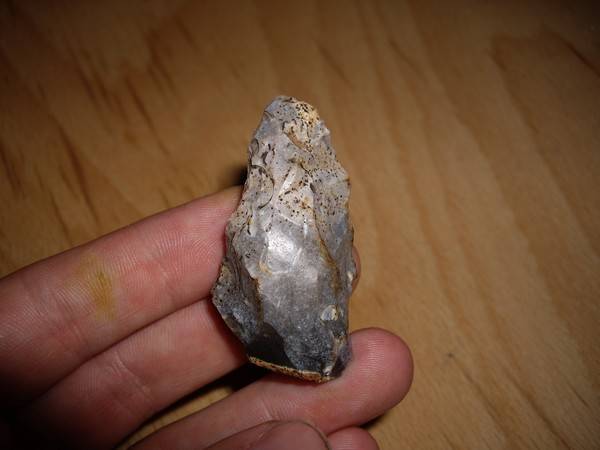 Dernière petite trouvaille, il s'agit d'un mini biface de 5 cm de long. Taille bifaciale bien évidente.