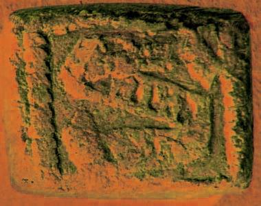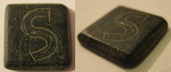 C'est un grand S apparemment ; il pourrait s'agir d'un poids antique : sextula ou solidus = 4,54 g