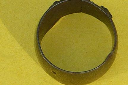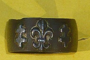 [1452] Bonjour,nouvelle bague avec fleur de lys et croix de lorraine.Trouvee dans une ancienne vigne.Poids de 5grs2 diametre 18mn .Cela fait petit pour un doigt masculin,la largeur de la bague est 9mn.Que pensez-vous de cette bague ?Merci a+ tard.