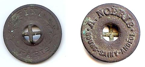 _Mon grand-père a ouvert son magasin de tailleur -chemisier au début du siècle (20eme) et pour faire sa pub , il avait fait faire ''ses ''boutons avec son nom et la ville.