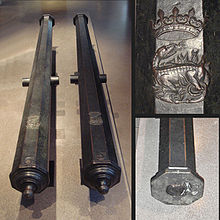 Cette forme octogonale pourrait être une' couleuvrine ' du XV em dite batarde ou une autre dite moyenne, la batarde tire des boulets d'un calibre de 87 mm, la moyenne des boulets de calibre de 82 mm et de 77 mm donc toujours plus gros que le diamètre de ton fragment qui est de 40 mm, ce qui ce rapproche le plus de ton calibre serait un 'fauconneau' d'un calibre de 32 mm, longueur 106 mm et pesant 25 kgs,