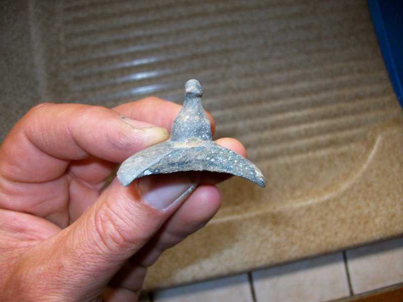 Couvercle de cruche romaine possible, le canard faisant office de poucier.