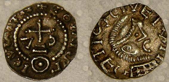 En tous cas, sur ton denier ça pourrait coller... Mais je n'arrive pas à lire tes légendes ou à les comparer aux exemplaires existants de triens (là ça devient trop complexe pour moi, il devrait plus ou moins y avoir écrit WINTRIO MONETARIVS, plus ou moins déformé / imité).