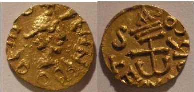 Je pense que c'est un triens (tiers de sous) Parisi, la croix au revers est assez caractéristique.