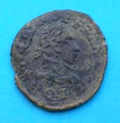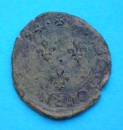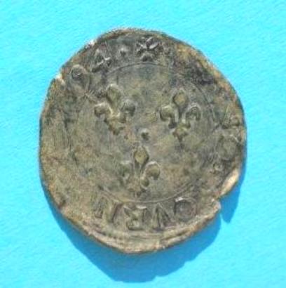 J'avais aussi trouvé cette monnaie lundi, en commençant à la nettoyer maintenant je m'aperçois que c'est un double tournois 1594 atelier Q.