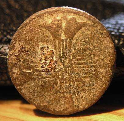 j'ai besoin des lumières d'un spécialiste pour identifier ce poids monétaire trouvé sur un chemin du nord de la Lozère.