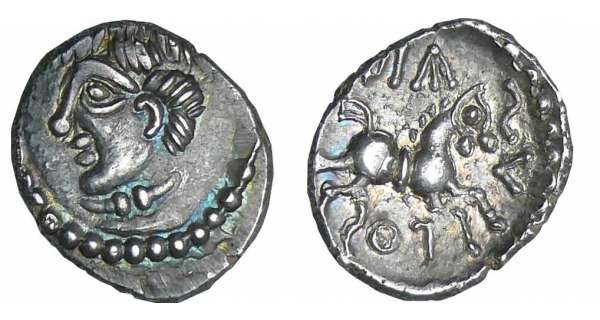 sûrement un quinaire éduen DIASVLOS (petit doute avec le quinaire reprenant les mêmes types mais avec légende OYBNO)