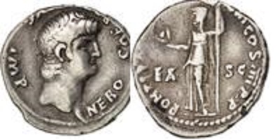 C'est un denier fourré de Néron au revers la Virilité casquée, en habit militaire, debout à gauche