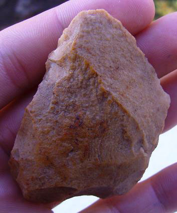 Il est taillé dans un éclat issu de la surface d'un galet. Je pense que c'est un petit biface moustérien.