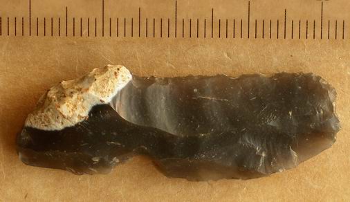 Effectivement c'est uncouteau à dos abattu, le dos étant situé en partie supérieure de la photo,JCT pourrait peut-être confirmer si les retouches sont bien perpendiculaires à la surface de débitage, un émoussé ne donnerai pas ce type de retouches .