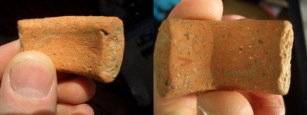 Pour moi en R7 c'est une petite anse. C'est en général assez difficile à dater, mais la qualité du matériau évoque l'époque gallo-romaine (mais ce n'est qu'une supposition). Attention au nettoyage des céramiques à pâte tendre : on frotte à la main sans trop insister.