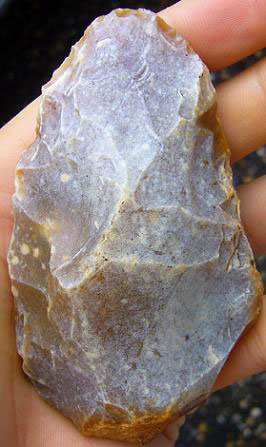 le biface me laisse une curieuse impression, la patine naissante ne lui confère pas l'age qu'il semble avoir par sa forme qui fait penser à un biface plus ancien !!!