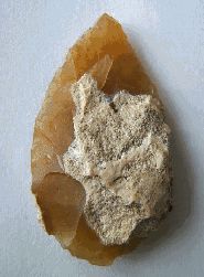 De plus, le bulbe de percussion se trouve au niveau de la pointe et n'a pas été arasé.