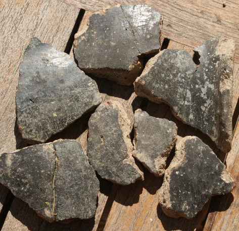 Cependant sur la première photo les céramiques ne me paraissent pas vernies mais plutôt lustrées. Cela pourrait correspondre à des céramiques communes sombres trouvées sur le site de Locmaria en Quimper. On y rapporte que certaines formes issues de La Tène sont lustrées lorsque l'on atteint les couches gallo-romaines. Les pâtes sont alors grises ou noires et la cuisson se fait en atmosphère réductrice.